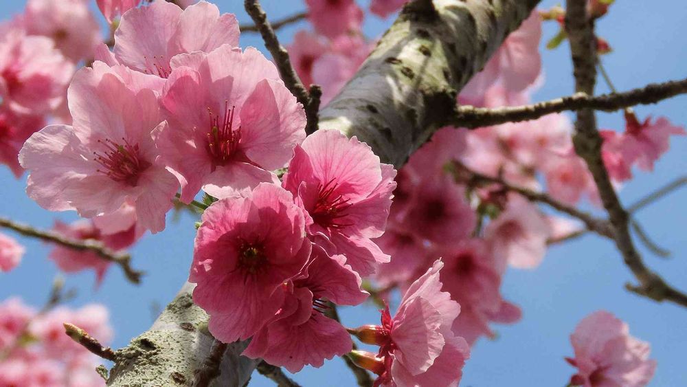 陽光桜(ヨウコウザクラ)は、天城吉野(アマギヨシノ)と寒緋桜(カンヒザクラ)との交配により生まれた交雑種。