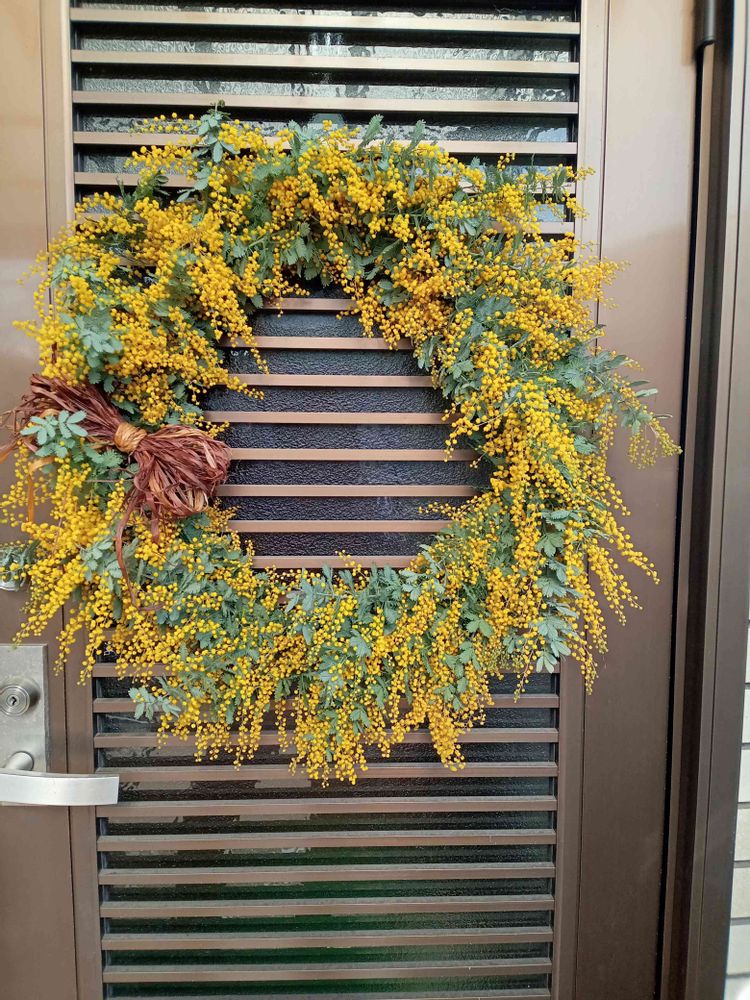 職場に植えた、ミモザも10年くらい、今年も沢山咲きました、沢山カットしてみんなで分け分け、花瓶に入れたり、リースにしたりスワッグにしたりみんなで楽しんでいます😊🎶🎶