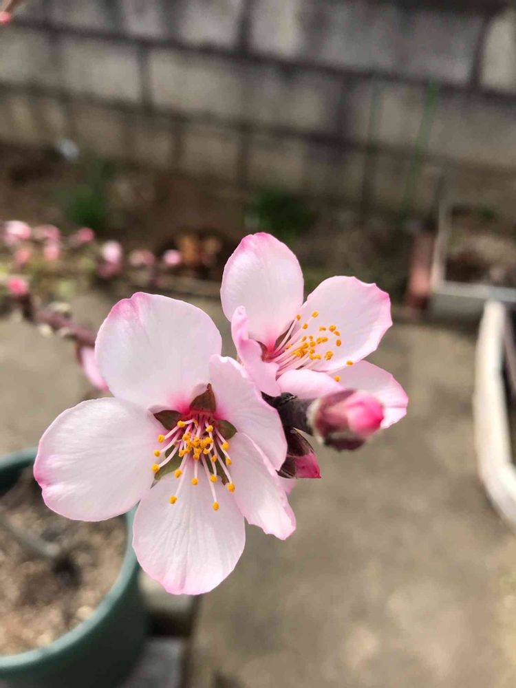 小さな庭,アーモンドの花。,コンクリートのお庭の投稿画像