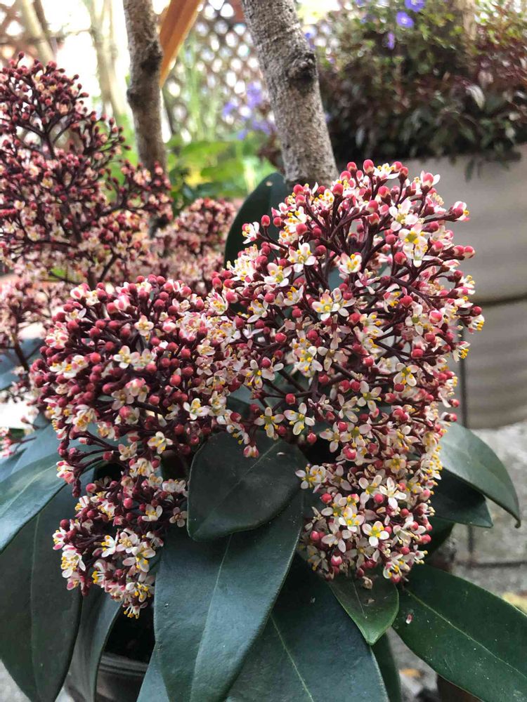 2/23にpostしてたスキミアルベラがほぼ満開になりました。