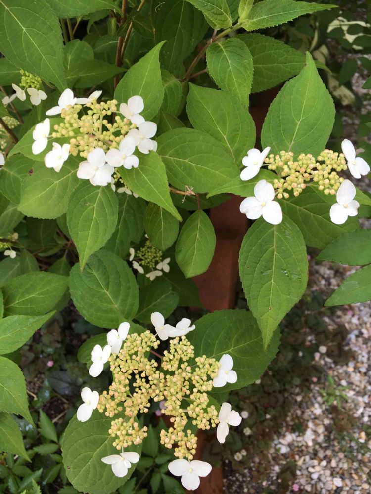 ぼちぼち紫陽花の投稿がふえて来ましたね🐌ヤマアジサイの紅は、初めはこんな風に真っ白です。そろそろ天気は下り坂。ナメクジ対策にビールトラップ仕掛けなきゃ🍺