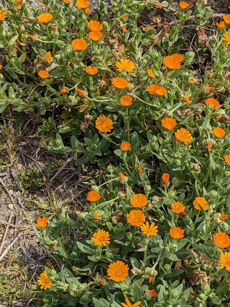 道すがら畑の中で見た❗モリモリと咲き誇る可愛い〜花🧡冬知らず🧡
