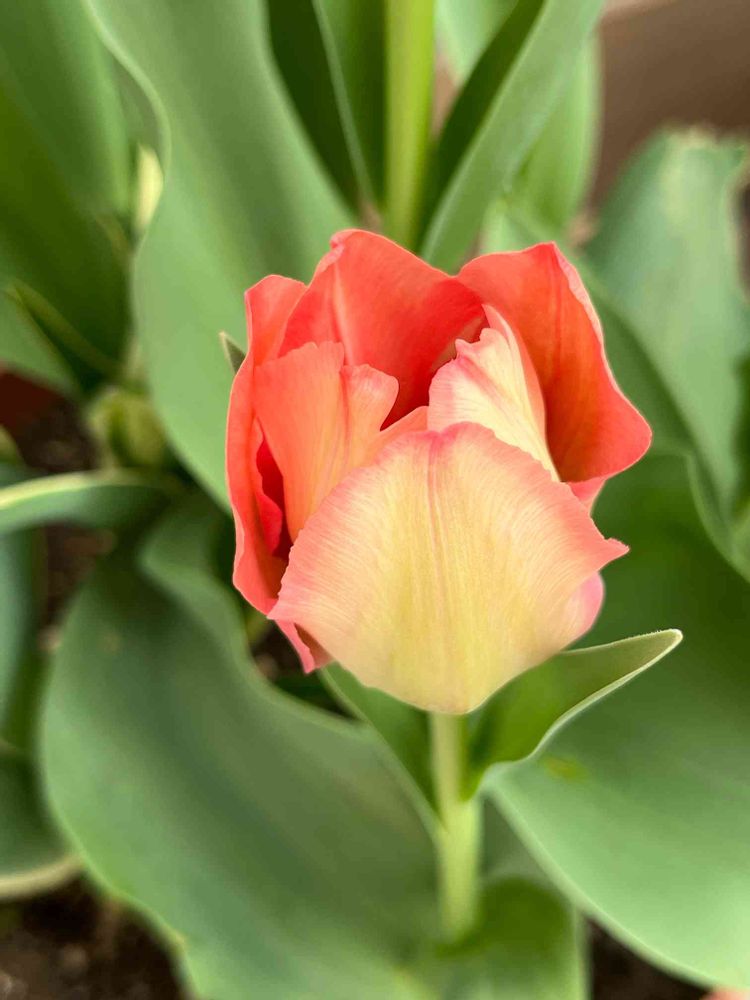 🐭に齧られ荒らされたチューリップの鉢植えから咲くことが出来ました