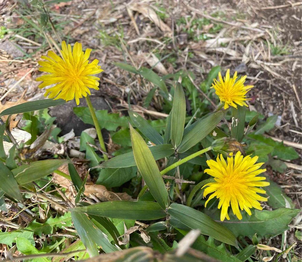 平地は西洋たんぽぽに侵食されつつあり、なかなか在来のたんぽぽを見かけられなくなってしまいましたが、よく行く地元の低山(約500m)は関東たんぽぽが群生しています。