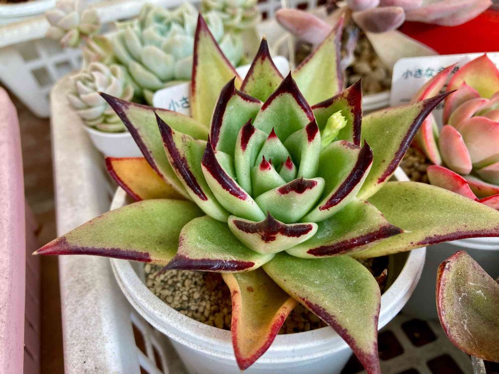 ピンクモヒカンは太陽に当たってる側が葉焼けみたいになってて、中心も同じ感じだったんだけど、葉を触るとポロッと落ちちゃったの!