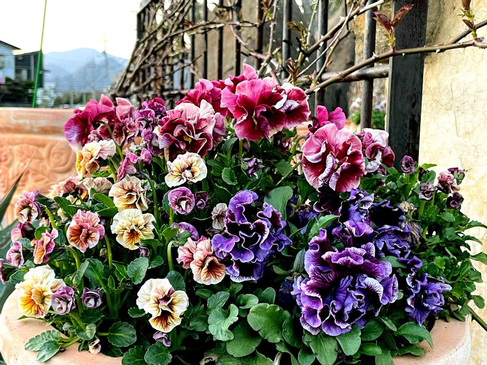 大きなパンジーの植木鉢です。