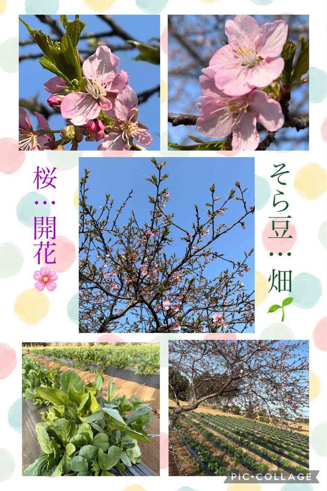 畑の脇にある桜のお花が咲き始めた…🌸