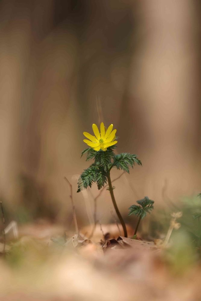 福寿草って地面からすぐ花が咲いてるイメージでした😳