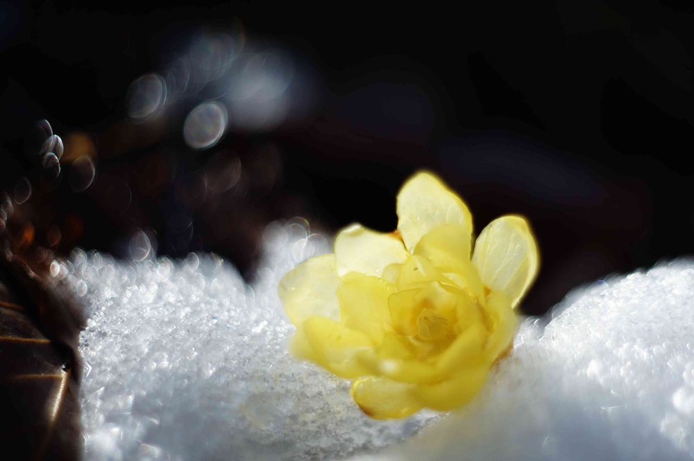 透明感のある蝋梅の花🌼と雪❄️のコラボ