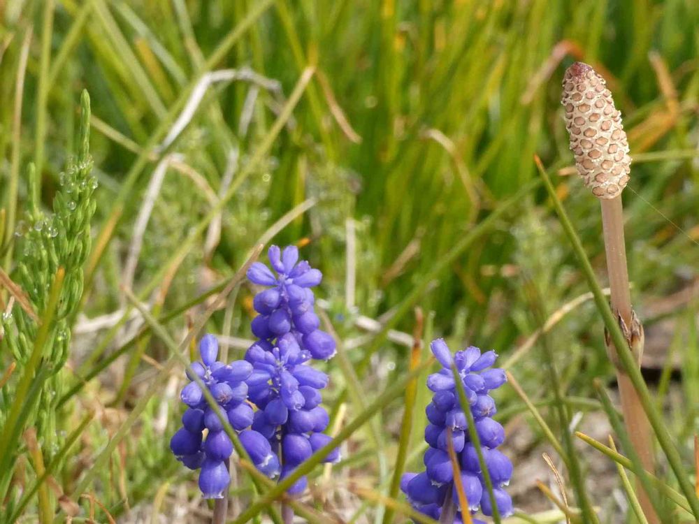 ムスカリさん、土筆さんと一緒に道端にあるなんて驚き‼️種が飛んだのかな⁈