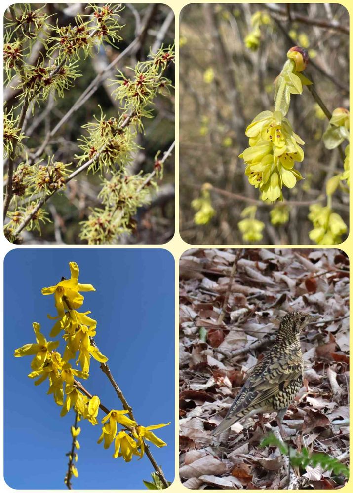 この時期はレンギョウがあちこちでみられますね。とても綺麗です❣️マンサクは植物園で見かけました。ユニークな植物だなと思いました。