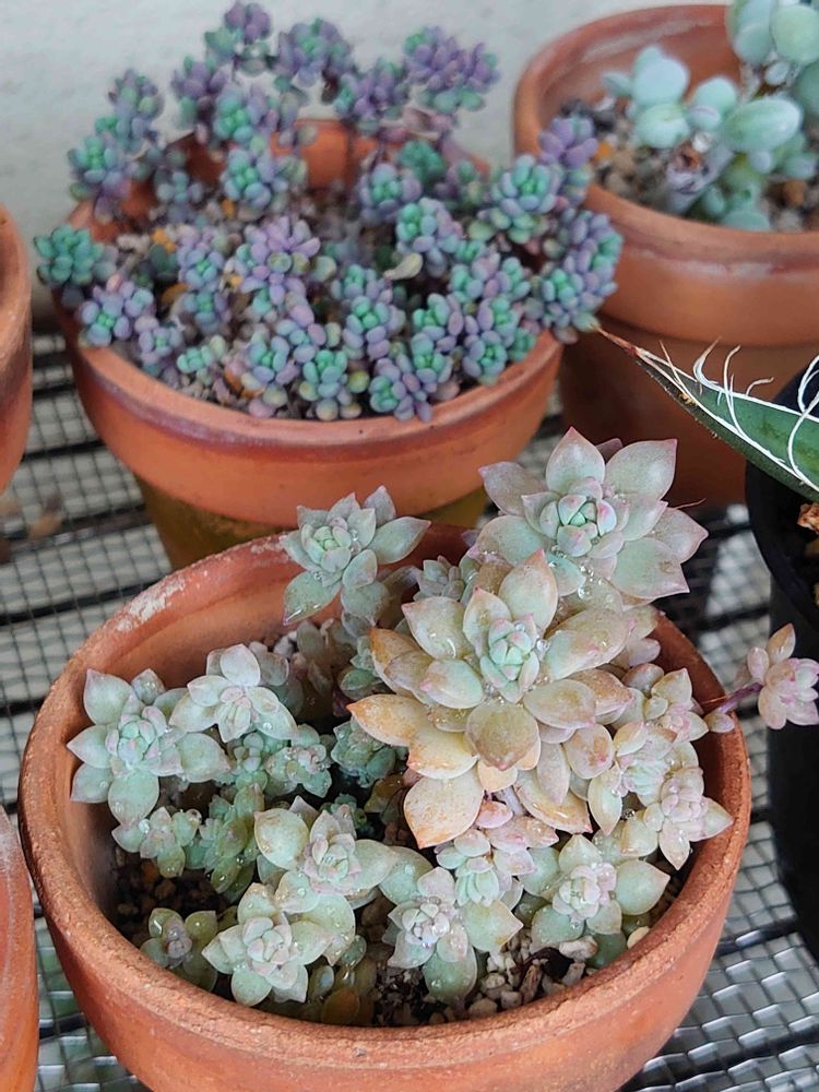 昨夜からの大雨でずぶ濡れの多肉たち😅🌱プロリフェラは小さいながら頑張って増えてます😆🌱奥のパープルヘイズも可愛い😊💜雨の月曜日↘行ってきます(^^)