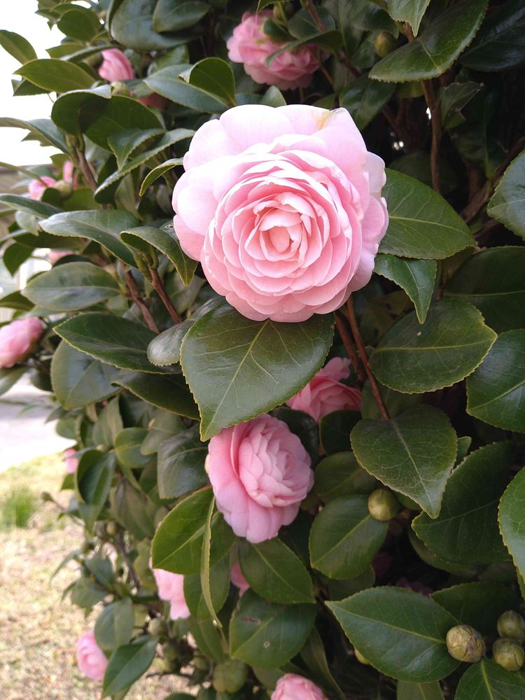 棟の裏庭に大きな乙女椿が毎年沢山の花を咲かせています💞💞💞