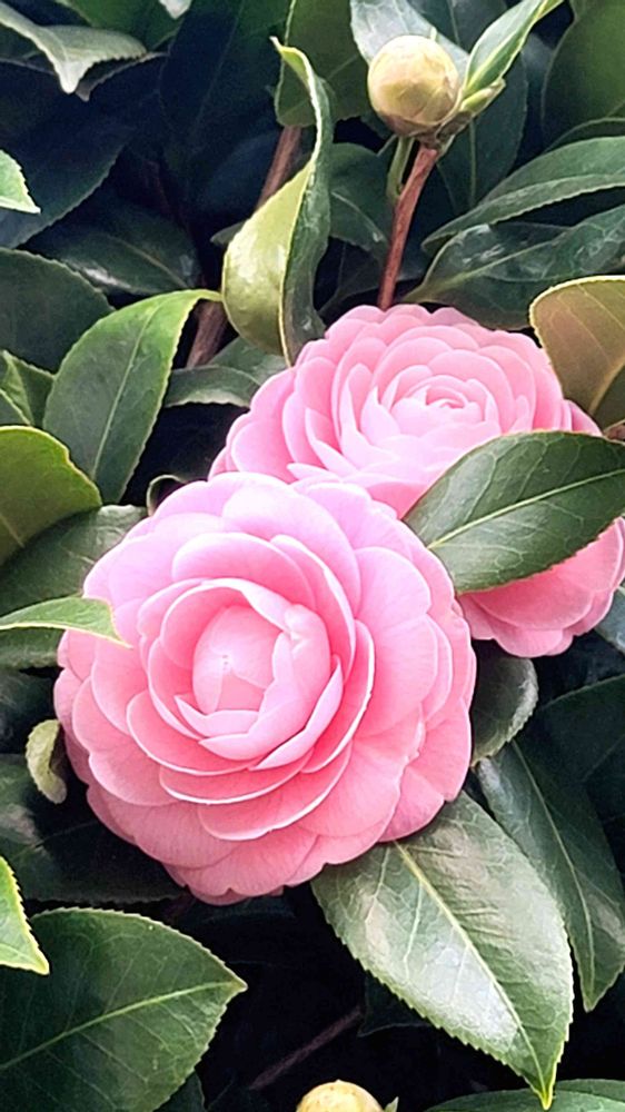 二つのツバキの色と重なり具合が何とも言えず可愛くて❣️撮った一枚でした🎵