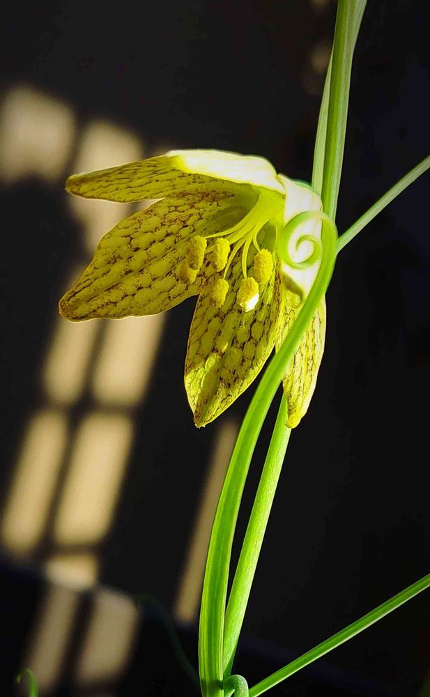 西日を浴びるバイモを
