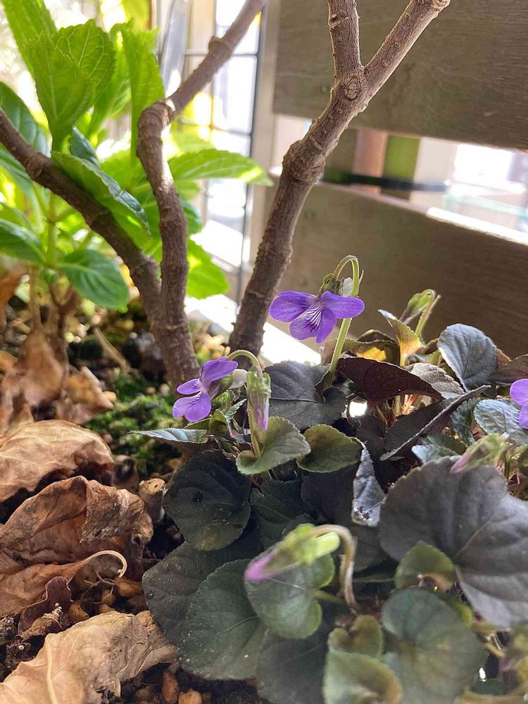 この冬「ビオラ・ラブラドリカ」をスタージャスミンの根元に植えました。昨日の午後、気がつけば、たくさんの花を咲かせてくれていました🤩✨ 日陰が似合うとってもシックな子💜
