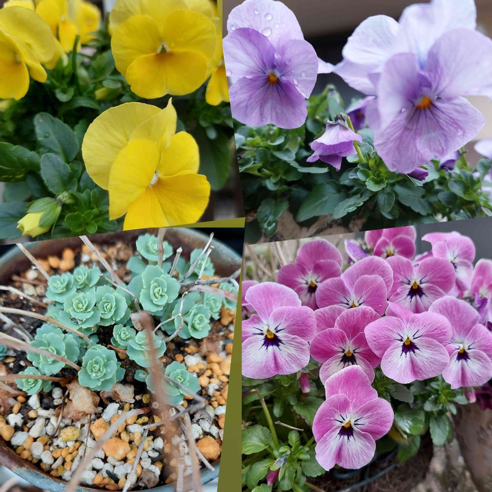うちのビオラさん達とミセバヤの赤ちゃん👶は寒暖差について行ってるみたいです💛💜💚💜