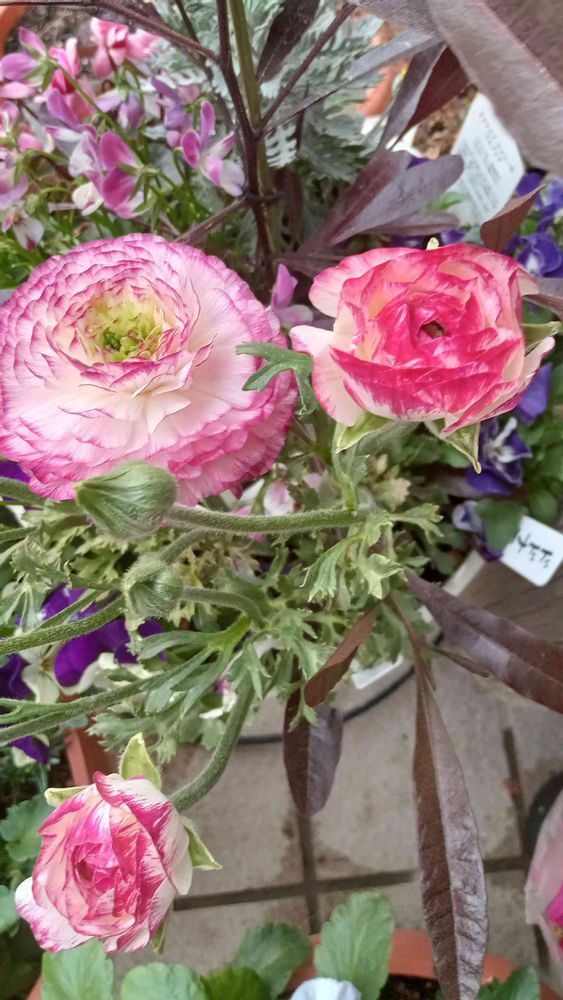 寄植えの中に、家で1株だけあるラナンキュラス。初めから付いていた蕾の花が開ききり、後からの蕾も開いてきたので切る前にパシャリ。お疲れ様、ありがとう。花瓶の中でゆっくり過ごしてね。