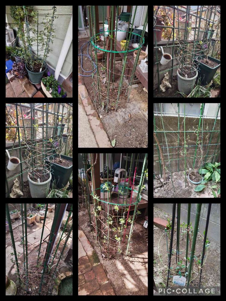 やっと、今日、クレマチス13種の植え替えや誘引手直しが全部、終わりました。バラの新芽がすごい勢いで吹き上げています。