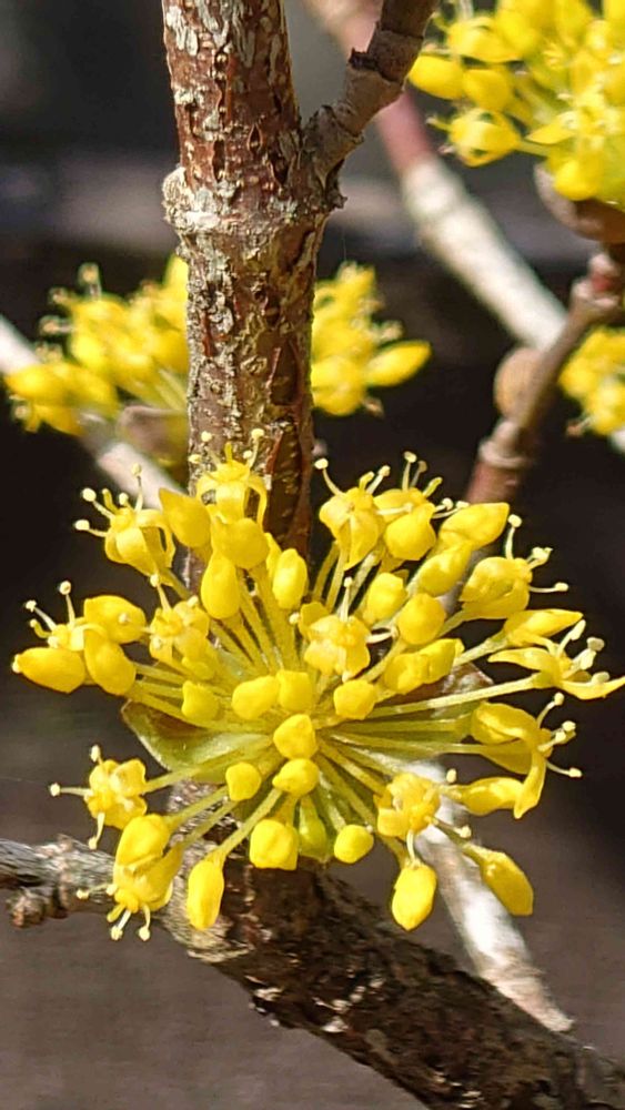 小さなお花が 集まって 枝の所々で、黄色の花束が。🥰