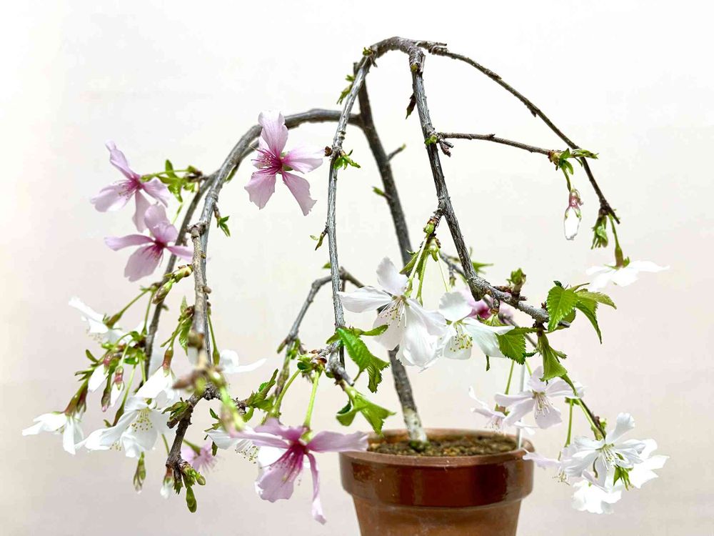 おはようございます😃ピンクと白の二刀流😆垂れ富士桜🌸
