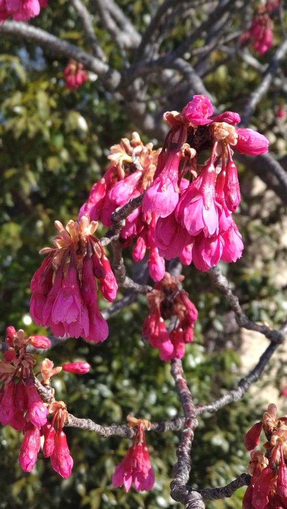 春の日差しを浴びて 寒緋桜(カンヒザクラ)が咲いています。