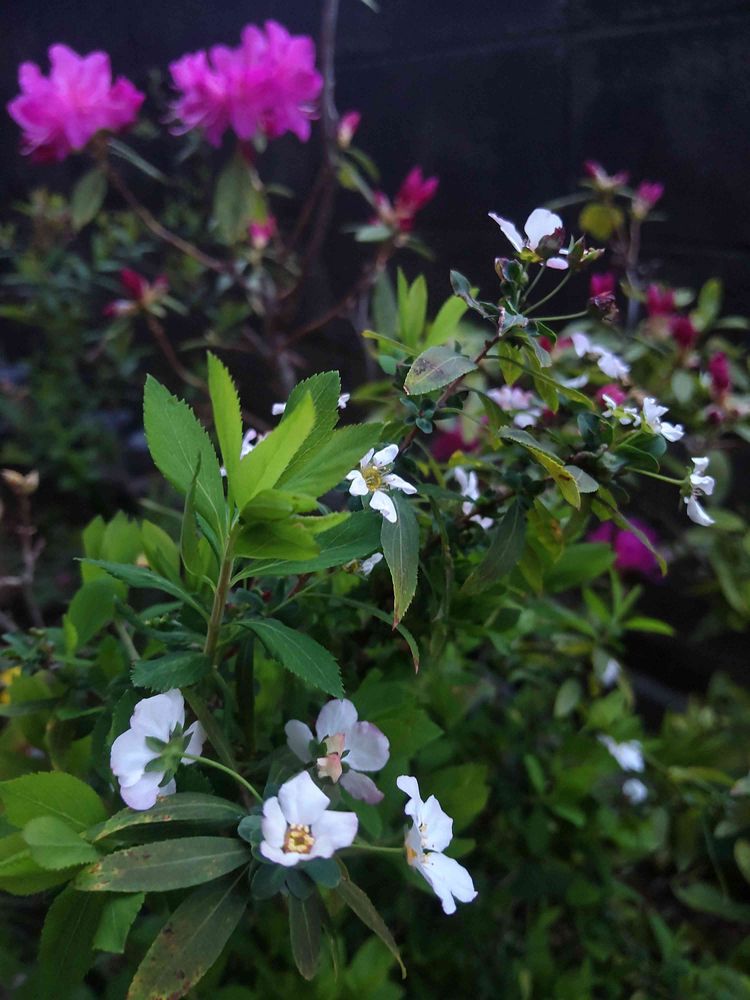 後ろにぼんやり、ヨシノツツジが咲いてくれて、ユキヤナギを引き立ててくれたみたい✨✨✨