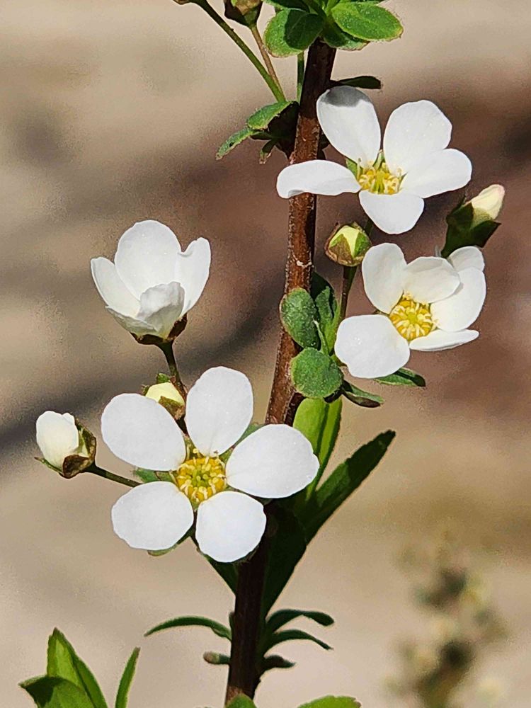ユキヤナギが ぽつり ぽつり さきはじめました