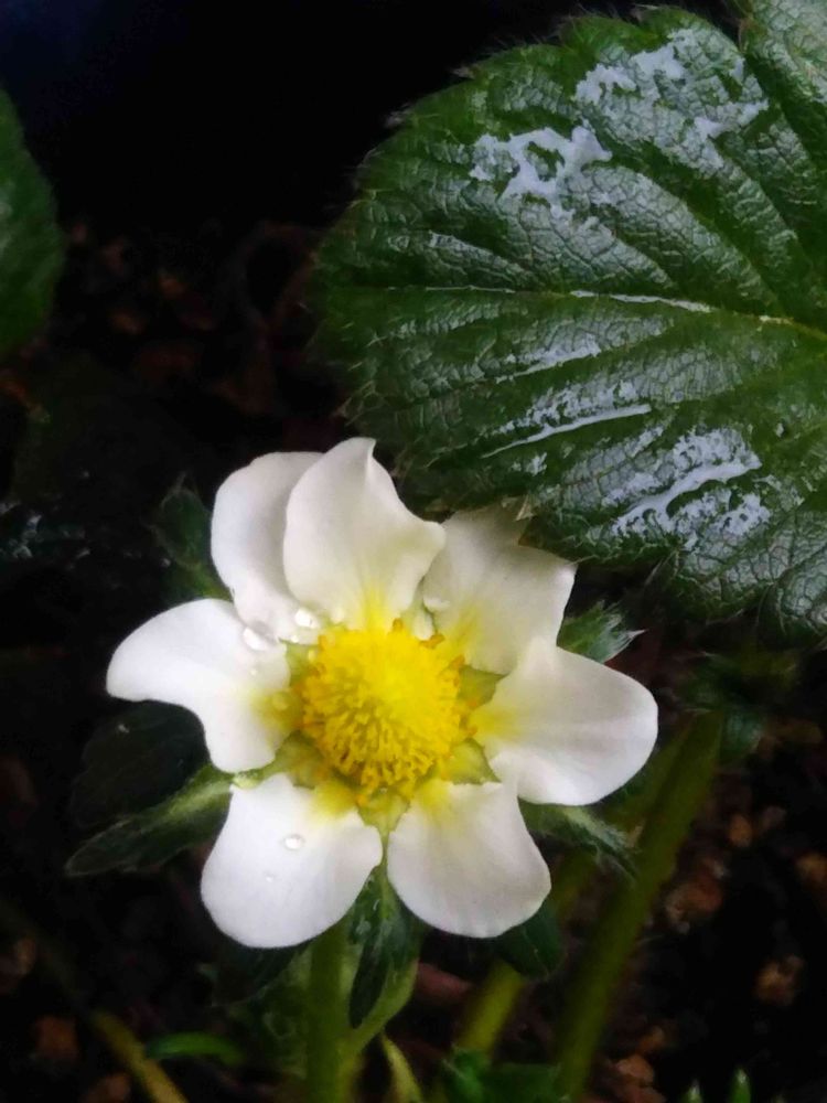 このイチゴの花びらは7枚。友人宅のイチゴの花びらは5枚だった???