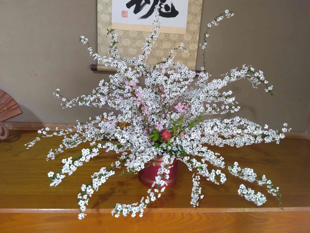 先日の生け花も庭に生えているように活けられていて素敵でしたが、ユキヤナギの本数も増えて華やかになりましたね。