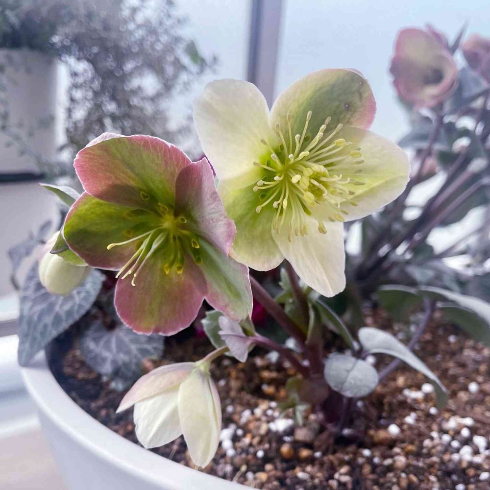 バルコニー/ベランダ,クリスマスローズ,寄せ植えの投稿画像