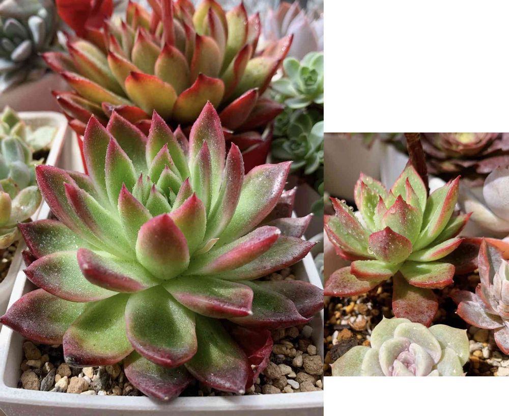 あと、多肉は葉挿しだとクローンなので同じ色になりますが、実生で育てると顔違いになるらしく、色も個体差がある様です。