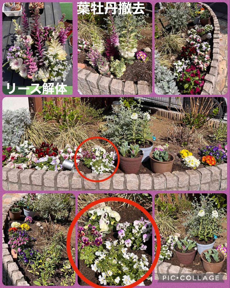 リースの葉牡丹と表花壇の葉牡丹を撤去。