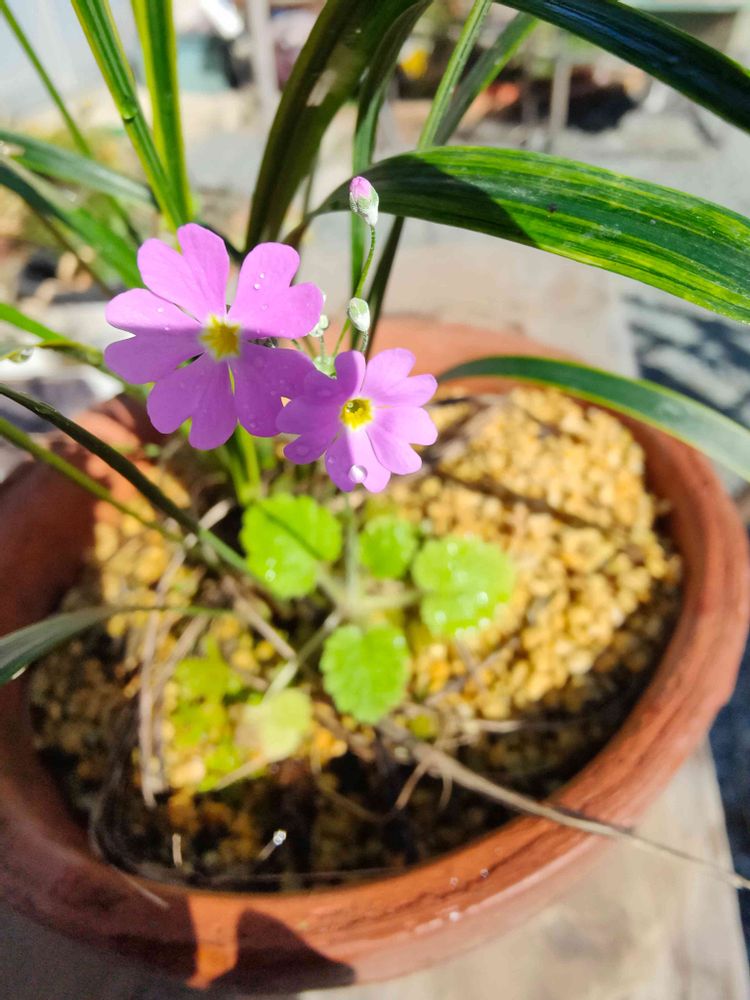 裏庭の一番奥斑入りヤブランの鉢に飛び込みナツゲショウにしては早いかなと拾い出したらなんと我が家で暫くは育てた覚えもないのに〜そっとしておこうね〜