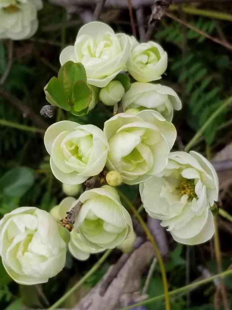 御衣黄は八重咲きしだれ桜のある遊歩道でもあったかもなんですが 木瓜の八重咲きの白は見たことないかも💦