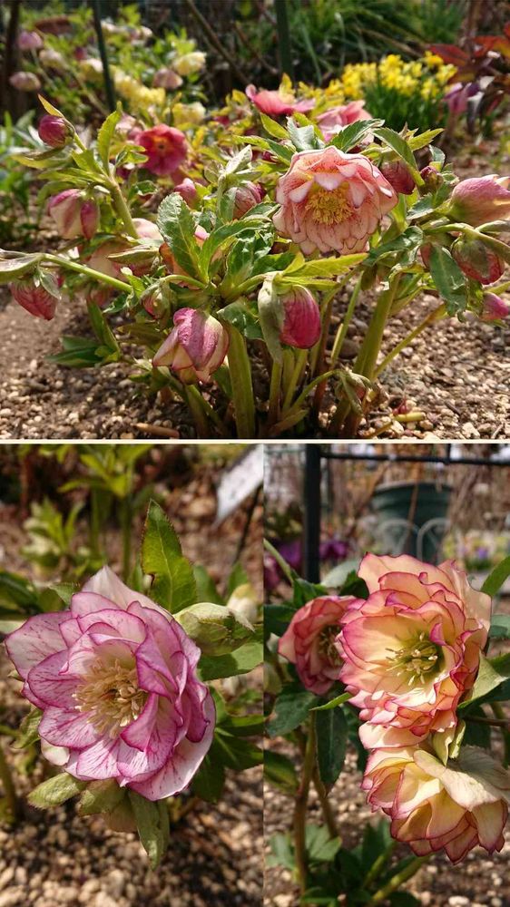 上のアプリコット🧡のダブルは大株で沢山のお花が咲いていて素敵ですね。😍