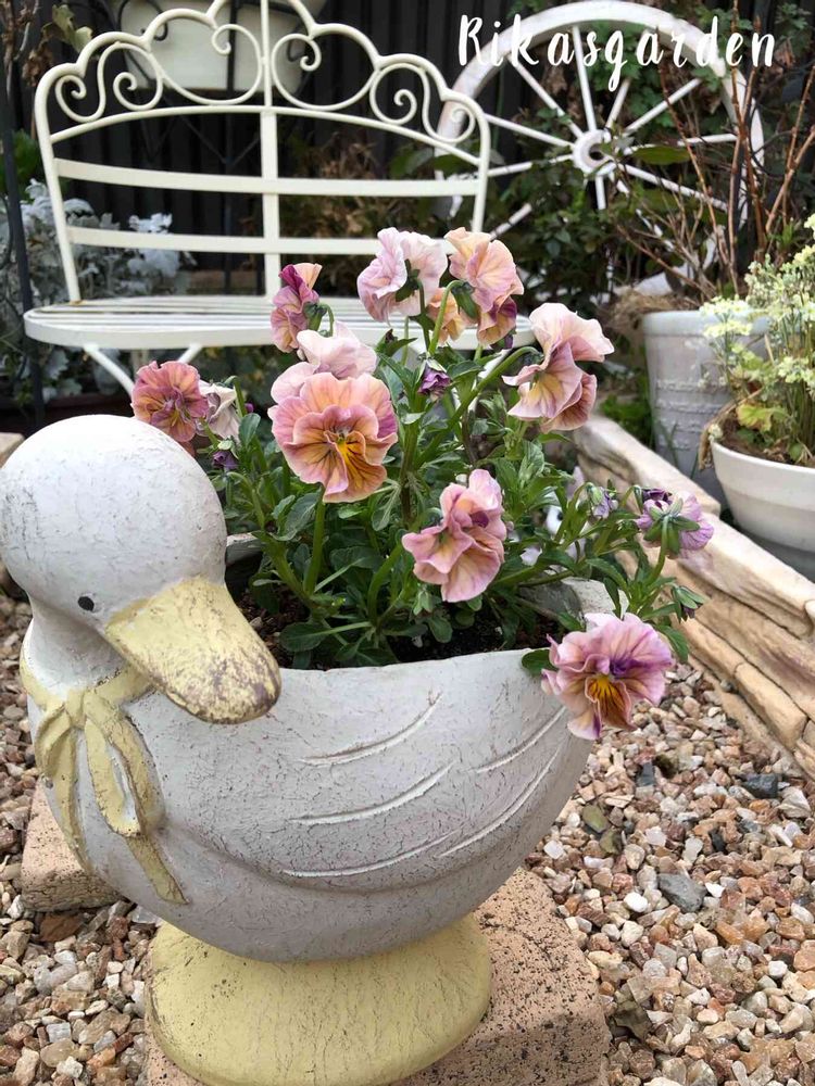 アヒルさんの鉢も一目惚れ、パンジーももうお迎えする予定なかったのですが、つい色に惹かれてお連れしました😉
