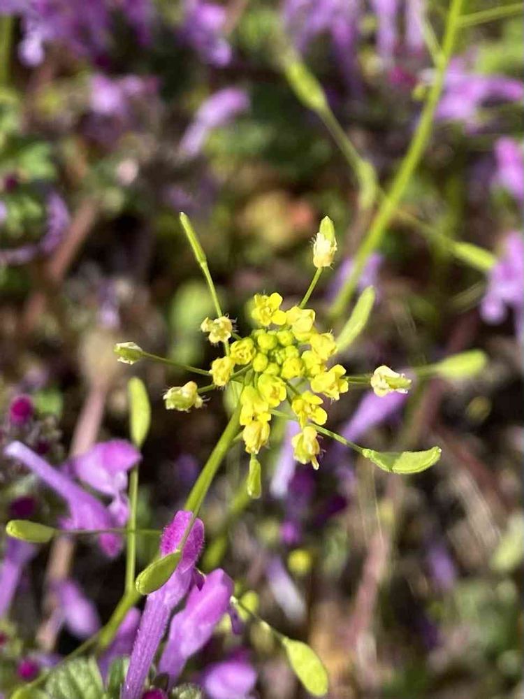 ピンク色のホトケノザに囲まれて黄色いイヌナズナがきれいにと咲いていました 💗💛