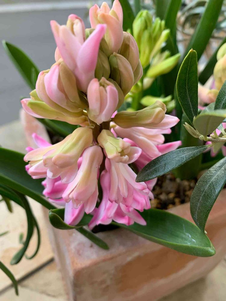 ヒヤシンスが数日間、目を離しているうちに咲き始めていました🌸