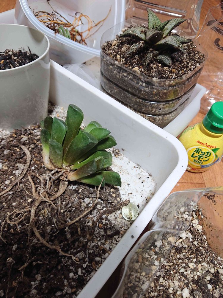 日曜にホームズで買った🌿🌵多肉達と、ボコボコ🥊💦になったハオの植え替えを思い切って( _ ˙꒳˙ )_ちゃっちゃと‼️ 飲みながら🥃やってたので🌃12時過ぎた🙊今日遅刻で怒られ😡携帯📱も忘れて〜💦💦アーレー😵💫💭