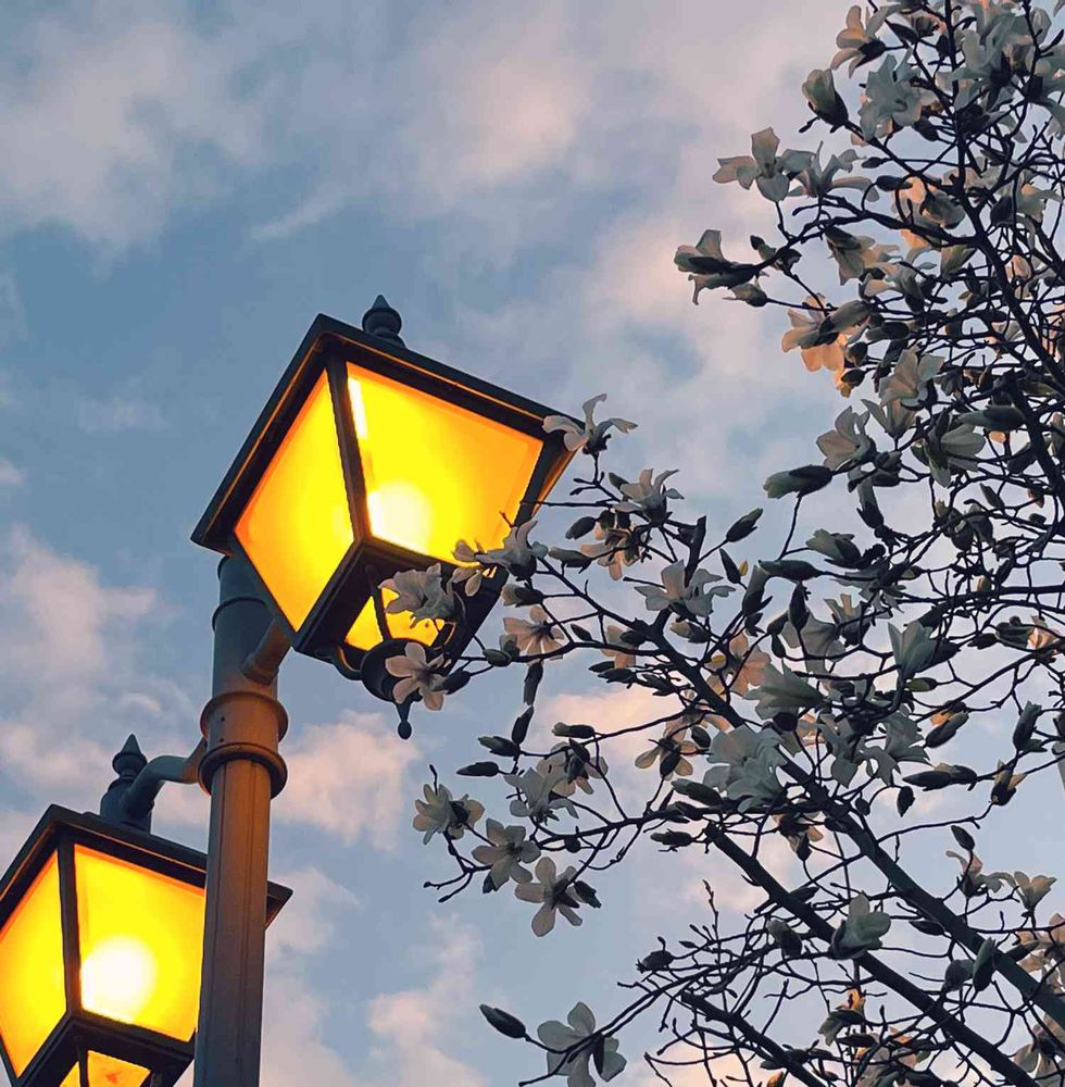 夕方の、日が落ちてきた時の、柔らかい空の色が好きです。今年も綺麗に咲き始めています。