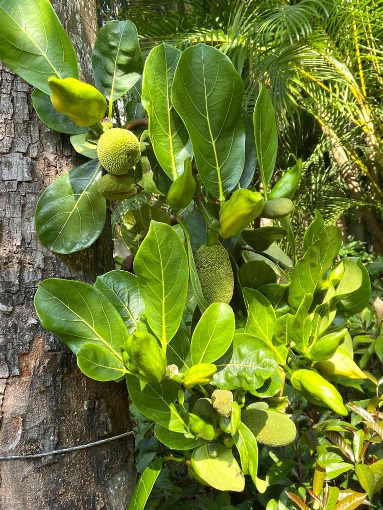 確かパンの木の雄花の写真があったはずなので後で投稿してみますね。私もパンの木が雌雄同株で異花なのをつい最近知ったのです。雄花が棒状で雌花が丸いですよね。観察すると面白いですね〜。🤗🟢