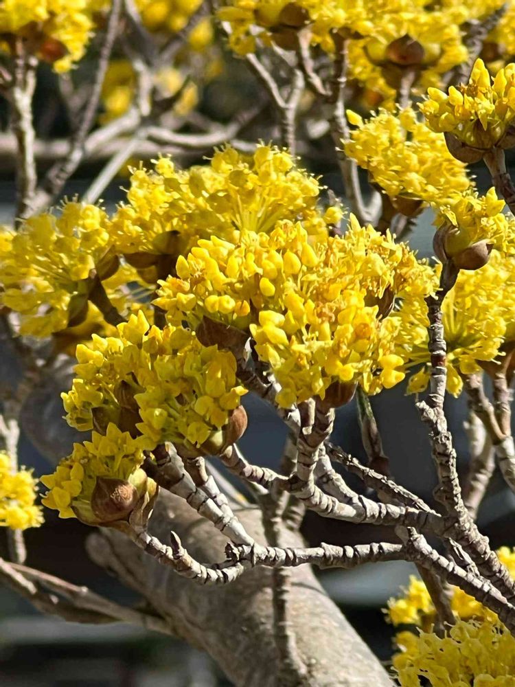 今晩は🌃サンシュユのお花✨💕💛💛💛鮮やかな黄色ですね☺️これはかなり大きな木のようですね。秋には実もなるなんて素敵ですね💕