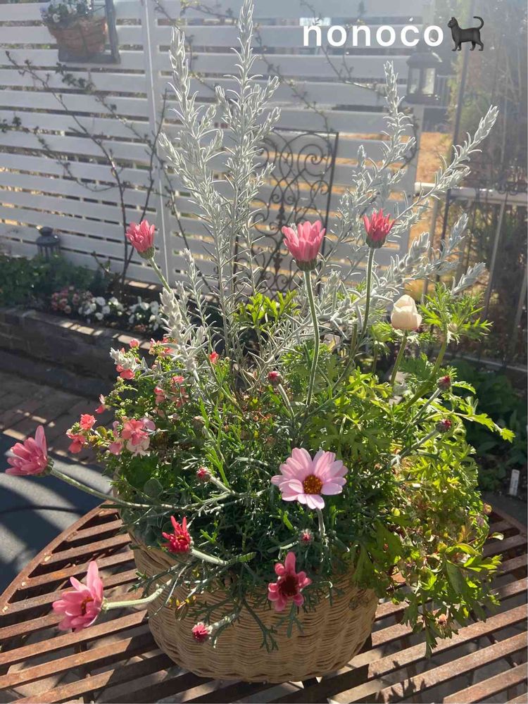 ローダンセマムとネメシアのお色があっていてシルバーリーフもプラスで、とっても素敵な寄せ植えですね✨