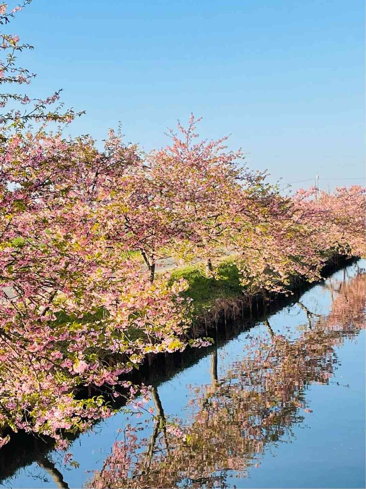 昨日撮影しました。河津桜🌸🌸🌸です。少し葉桜になってましたが川面に写る🌸🌸🌸がとても気に入ってアップしました。