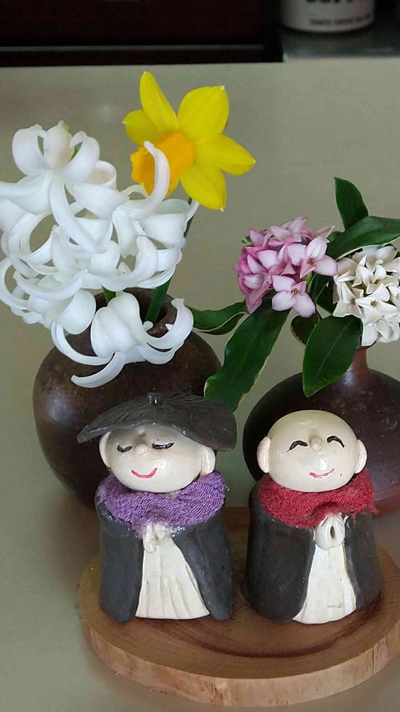 春の香りがする花ばかりを集めてお地蔵様に、、、🤍💛❤️(*^ー^)ノ♪