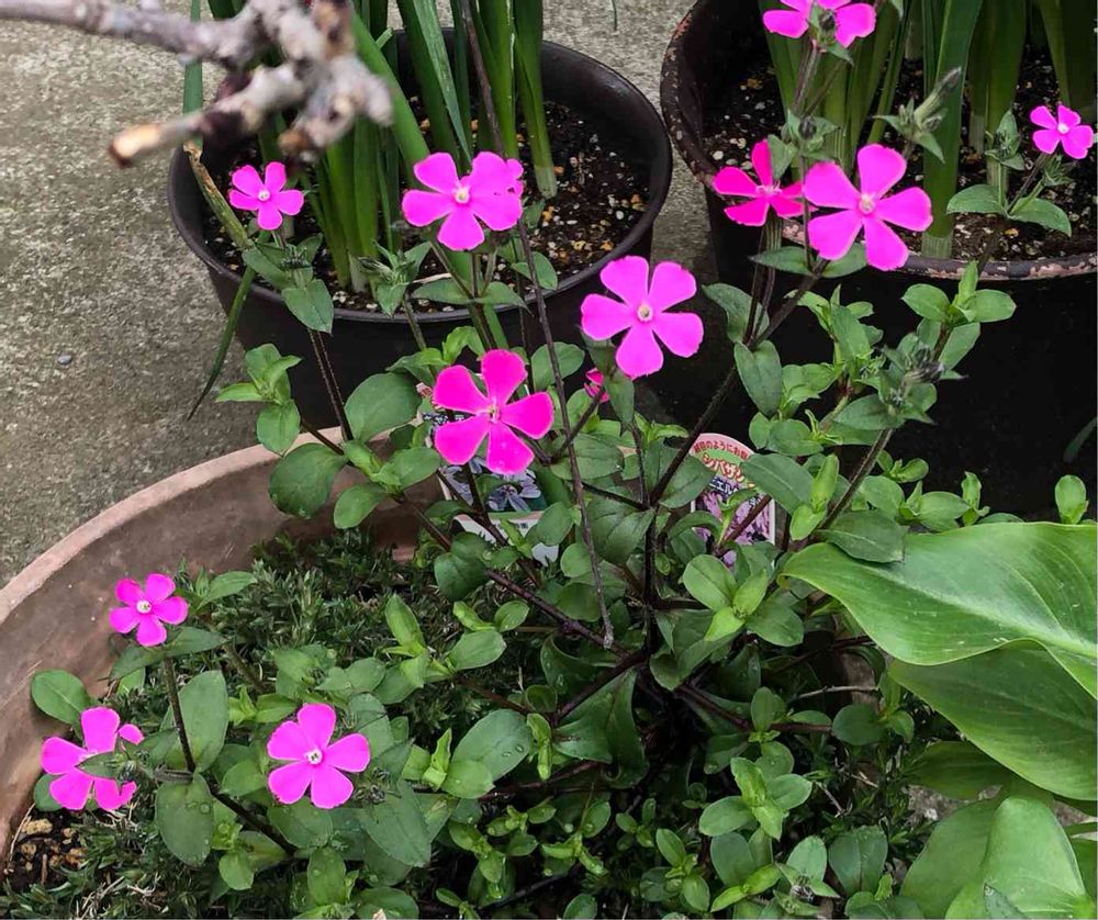 去年はこの植木鉢からオーブリエチアと勿忘草が零れ種で咲いたのです。今年は見かけないです。