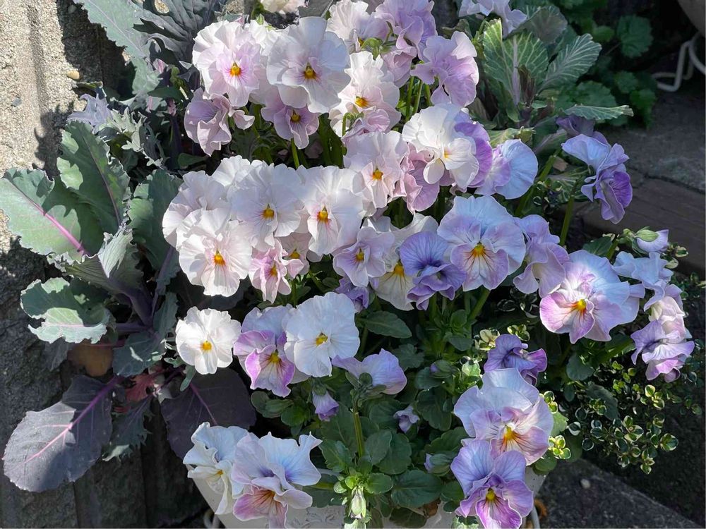 ハボタンはお花が少ない時はとっても良いのですが、春になるとぐんぐん伸びてお花が咲いてしまいますね💦