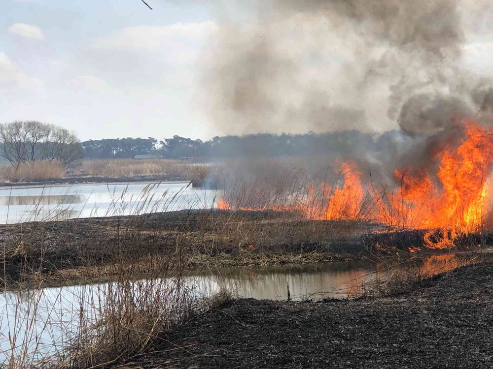 渡良瀬遊水地のヨシ焼きは一般人は中に入れず、遠くの土手からしか見られないのですが、