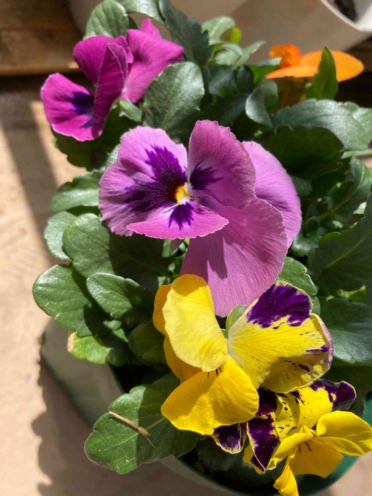 種まきのビオラさん達がひとつずつ咲き始めています。色もみんなそれぞれ違って華やか🌸🌼🌸🌼